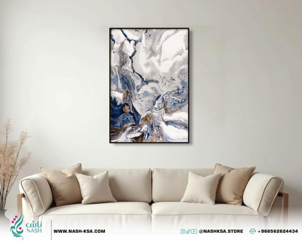 انغمس في عالم من الغموض، التأمل، وروع الفن التجريدي بلمسة من الفخامة مع لوحة "نظرة أخرى". هذه اللوحة الجدارية الفنية تُجسّد تصميمًا فنيًا معاصرًا يُظهر مزيجًا من الألوان المتداخلة مثل الأبيض، الرمادي، الأزرق الداكن، والبني الذهبي، بنمط يشبه الرخام أو السوائل المتدفقة، مما يخلق إحساسًا بالعمق، الحركة، والجاذبية البصرية الفريدة. تتميز هذه اللوحة الكانفس بتركيزها على التناغم بين الألوان المختلفة والتفاصيل المجردة، مع لمسة من التفاصيل التي تُضفي عليها هالة من الوقار، الرصانة، والجمال الخالد الذي يرمز إلى الأناقة الهادئة.
