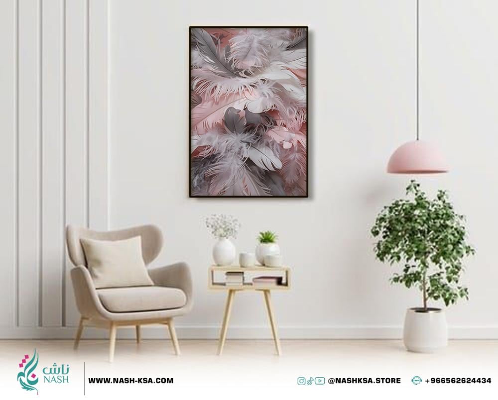 • الأسلوب: لوحة فنية تجريدية بلمسة عصرية، يركز تصميمها على التعبير والتوازن.